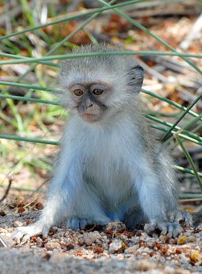 Kurz vor dem Fluss hatte sich eine kleine Herde Grüne Meerkatzen (Chlorocebus) niedergelassen. Diese Tiere leben meist in großen Gruppen, die aus einigen Männchen, vielen Weibchen und deren Nachwuchs bestehen. Die Kleinen waren wirklich putzig und wir hielten eine Zeit lang an, um sie zu beobachten. Wir wurden zwar neugierig beäugt, doch sie zeigten keine Angst vor dem Auto und vor unseren Stimmen. Auch mitten im Wasser haben wir noch einmal angehalten, denn es gab es viele schöne Libellen und Schmetterlinge zu bewundern.