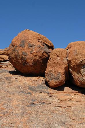 Nach ca. 6 Kilometern Fahrt erreicht man den Moon Rock, einen riesigen flachen und dunklen Felsen mitten in der Landschaft. An der Oberfläche gibt es kleine Löchern, in denen sich bei den seltenen Regenfällen das Wasser sammelt. Oben links ist der Fels zu sehen.
