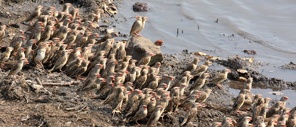 Der Blutschnabelweber (Quelea quelea) ist eine Singvogelart aus der großen und bunten Familie der afrikanischen Webervögel mit insgesamt 119 unterschiedlichen Arten. Seine Körperlänge beträgt etwa 12-13 cm bei einem Gewicht von 30 Gramm. Der rote und relativ kräftige Schnabel ist ihr Markenzeichen. Zur Brutzeit tragen die Männchen zur deutlichen Unterscheidung eine schwarze Gesichtsmaske.