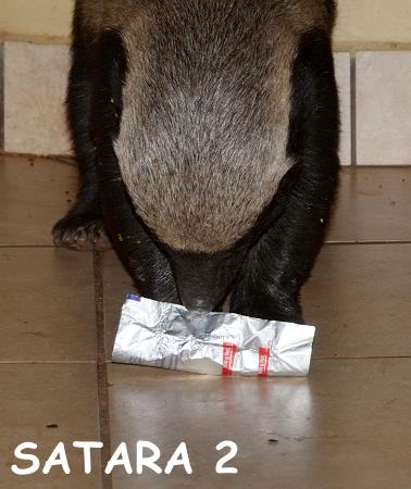 In der Nacht kam dann auch wieder eine Wildkatze vorbei und später wurden wir durch Geräusche auf der Terrasse geweckt. Dort durchsuchte ein Honigdachs gerade unseren Mülleimer auf der Veranda, in dem sich aber nur leere Flaschen, Dosen und Plastikteile befanden. Den Restmüll hatten wir in die zentralen Müllbehälter mit Deckel geworfen, nur in leeres Butterpapier hatten wir übersehen. Dieses hatte seine Aufmerksamkeit erregt und wurde abgeschleckt. Michael gelang davon ein schnelles Foto durch die geöffnete Türe, oben als erstes zu sehen. Einem Honigdachs sollte man sich nicht besser in den Weg stellen - da wir den Fluchtweg nicht versperrten trottete dass wehrhafte Tier am Ende unbeeindruckt einen halben Meter neben uns vorbei zum Ausgang der Terrasse. Wie hielten uns aber vorsichtig hinter der Gittertür verborgen.