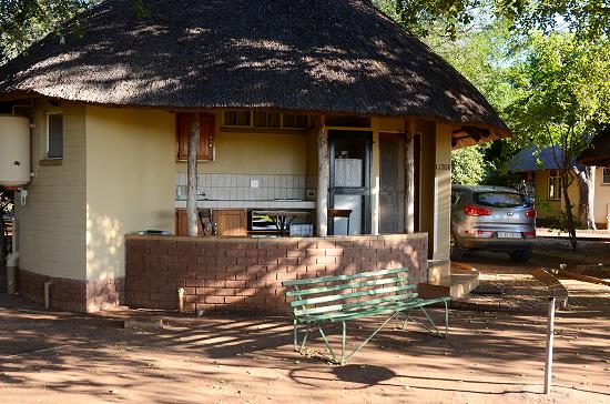 Wir haben uns in dem Chalet sehr wohl gefühlt. Die Einrichtung im Inneren ist 08/15 Kruger Style und nicht sehr spektakulär. Auch der Blick auf den Zaun ist nett, dahinter war aber zu dieser Jahreszeit sehr hohes Gras so dass wir kaum ein Tier zu sehen bekamen. Ab und zu mal ein paar Impala-Hörner und Nachts eine am Zaun entlang patrouillierende Hyäne. Eine Bank steht direkt vor dem Chalet und bietet Sitzplatz zum Beobachten, die eigene Terrasse ist aber gemütlicher und von Nachbarn nicht einsehbar.