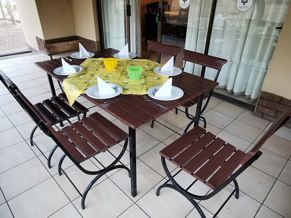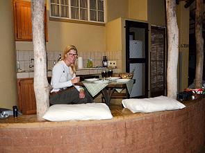 Wir bekamen die Nummer 87 im D Circle. Unsere südafrikanischen Nachbarn waren allerdings ziemlich laut am ersten Abend uns hörten ziemlich laut Musik am Abend. Am nächsten Tag konnten wir uns dann revanchieren, wenn auch ohne Musik. Denn am gleichen Tag waren Miglieder aus der Kruger-Facebook Gruppe vor Ort und wir konnten so zu sechst auf unserer Terasse zusammen grillen. Im Inneren war viel Platz, die Küche riesig und es gab Sofas.