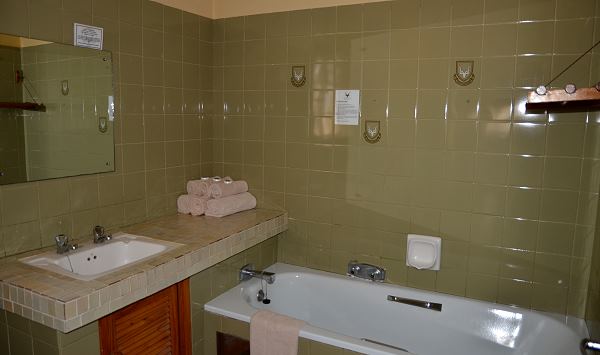 Die Bäder sind mit den üblichen grünen Fliesen ausgestattet, wir hatten mal wieder die Wahl zwischen zwei Schlafzimmern. Natürlich hat auch hier jedes Cottage einen eigenen Grillplatz. Im Biyamiti Bushveld Camp kann man sich auch mehrere Tage lang sehr wohl fühlen.