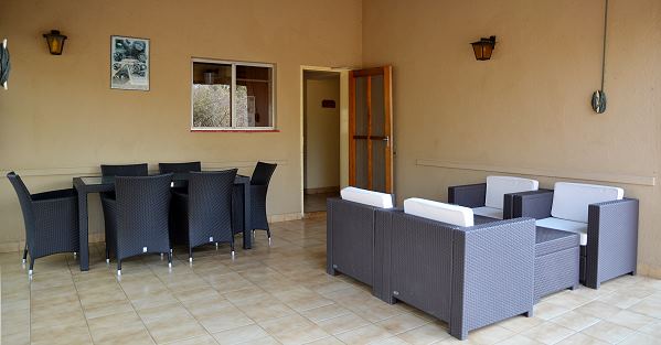 An den Unterkünften in Biyamiti wurde in der letzten Zeit einiges getan, so verfügten zwei unserer Nachbarhäuser nun um eine komplett mit Fliegengitter eingezäunte Terrasse. Auch die Sessel zum Relaxen auf der Terrasse und der Esstisch mit Stühlen, hier ist alles nagelneu, modern und sehr bequem. Wetterfestes, geflochtenes Plastik mit bequemen, hellen Polstern. Wenn doch nur alle Camps im Kruger schon so gut ausgestattet wären, aber das wird in Zukunft sicher nach und nach passieren.
