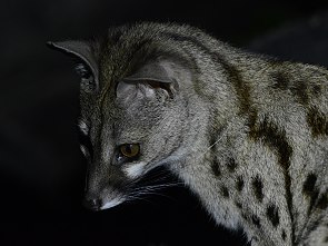 Danach kommen die Fledermäuse heraus und am späteren Abend bekommt man meist Besuch von Genets, wir sahen davon drei. Sie waren nicht sehr scheu, wahrscheinlich werden sie auch von einigen Besuchern gefüttert. Von uns haben sie nichts bekommen und trotzdem blieben sie zwei Nächte lang in der Nähe. In der dritten Nacht haben wir dann keine eizige mehr gesehen.