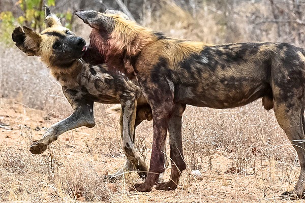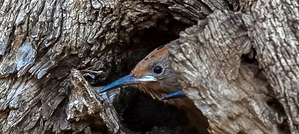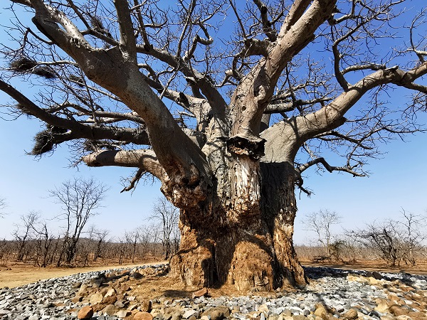 In der Hitze von 2019 warn das Vogelleben am Bird Hide und im Camp ganz besonders, denn alle hatten sich hier versammelt. Es war noch ziemlich Grün im Camp und das Wasser war nah. An der Hauptstrasse hatten wir lange wir eine ganze Familie Hyänen am frühen Morgen mit etwas Regen für uns alleine und wir sahen diesmal sogar Wildhunde in der Nähe. Der grosse Baboab auf dem Weg zum Camp hatte unter den Elefanten sehr gelitten, die sich gerne die saftige Rinde schmelcen lassen. Oben ist ein neues Bild vom einst mächtigen stamm zu sehen.
