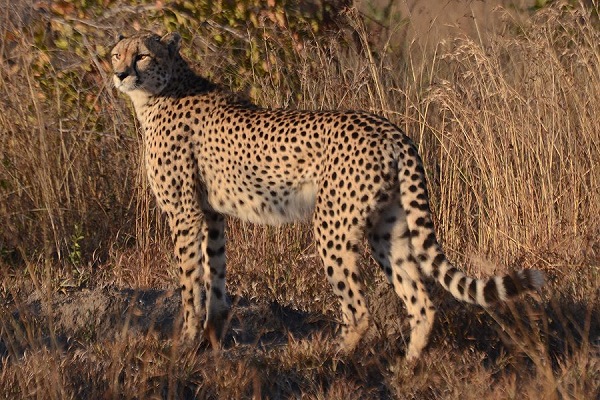 Der Gepard (Acinonyx jubatus) ist im Jagdverhalten hoch spezialisiert und gilt als schnellste Landtier der Welt. Die Sprinter brauchen viel Platz und da es im Kruger National Park wenig offene Flächen gibt, findet man sie hier eher selten und am besten in bestimmten Regionen im Zentrum des Schutzgebietes. Sie bevorzugen Bereiche mit hohem, Deckung bietendem Gras und Hügeln als Ausschaupunkten. Zu viele Bäume und Sträucher machen eine Landschaft für Geparde ungeeignet.