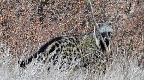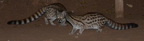 Es sollte erst in unserem 10. Urlaub zu einer Begegnung einer Großfleck-Ginsterkatze (Genetta tigrina) kommen, so lange mussten wir leider warten. In der Region leben ebenfalls Kleinfleck-Ginsterkatzen (Genetta genetta).