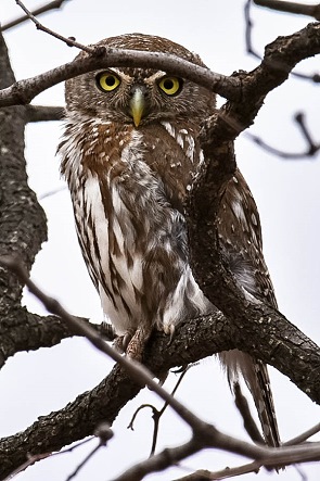 Der Perl-Sperlingskauz (Glaucidium perlatum - Pearl spotted owlet), auch Perlkauz genannt, ist eine kleine Eulenart der Sperlingskäuze. Er ist eine in Afrika weit verbreitete Art und man kann ihn mit viel Glück auch tagsüber in Büschen entdecken, vor allem bei Regenwetter. Denn der kleine Kauz ist überwiegend dämmerungsaktiv und in mondhellen Nächten jagt er auch während der Nacht.