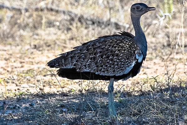 Drei Arten von Trappen kann man im Kruger Nationalpark beobachten, auch sie sind meist gut getarnt und verharren reglos bei Annäherung. Am Auffälligsten ist der grösste Vertreter seiner Art: die Riesentrappe (Ardeotis kori - Kori Bustard). Die Riesentrappe erreicht eine Höhe von rund 1,3 Meter und ein Gewicht, je nach Geschlecht, von 6–19 kg. Sie ist somit einer der schwersten flugfähigen Vögel. Das Gefieder ist hauptsächlich schwarzbraun, jedoch weisen Kopf, Hals und Bauch eine gräuliche bis weiße Färbung auf. Markant sind die langen und ungefiederten Beine sowie die drei kräftigen Zehen an den Füßen.