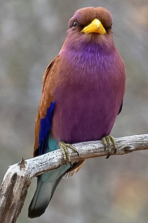 Im Oktober 2019 haben wir dann zum ersten Mal die vierte Rackenart im Norden vom Kruger gesehen: der Zimtroller (Eurystomus glaucurus - Broad-billed roller). Und das gleich drei Mal, was wahrscheinlich an der Jahreszeit lag. Zimtroller sind etwa 29–30 Zentimeter groß. Die Oberseite und Unterseite des Rumpfes und der Kopf sind rost- bis kastanienfarben, die Brust ist leicht violett. Die Flügelründer sind dunkelblau, der Schwanz ist auf der Unterseite hellblau und an der Spitze dunkel. Der gelbe Schnabel ist kurz und kräftig, ein auffälliger Vogel. Der Zimtroller lebt auf großen Lichtungen und an Flussufern, er benötigt große Bäume und Wasser.