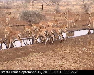 Ich habe die Bilder immer archiviert, wenn es mal ganz besondere Tiere oder schöne Szenen am Wasserloch gab. Hier ist eine kleine Auswahl der Webcam in Satara mit Snapshots, die bei Tageslicht entstanden ist. Die Nachtaufnahmen findet Ihr hier.