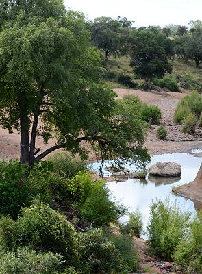 Die Schleife der S52 vor dem Camp durchquert einmal das Flussbett des Shingwedzi und an dieser Stelle konnten wir immer wieder Eisvögel beobachten. Ein anderes Mal lag ein Krokodil malerisch auf einem Stein im Wasser. Danach führt die Strecke dann am anderen Flussufer wieder zurück zur Hauptstrasse in Richtung redrocks oder für Gäste zum Bateleur Camp. Zuvor hat man auch als Besucher noch die Möglichkeit die kleine Stichstrasse zum Tshanga Picnic Spot und Lookout hochzufahren.