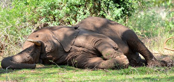Mitten im Fluss leben hier auch einige Hippos und im Wald hatten wir ein paar Begegnungen mit Elefanten. Einer lag sogar auf dem Boden und wir dachten schon, er wäre krank oder tot. Dann stand er aber sehr plötzlich auf und wir waren froh über einen ausreichenden Abstand.