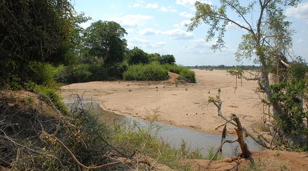 Am Ende der Strecke erreicht man dann Crooks Corner, die Gaunerecke. Hier befindet man sich auf einer Landzunge im Nordosten des Kruger National Park, direkt am Zusammenfluss des Limpopo und des Luvuvhu River. Somit hatten wir das dritte Dreiländereck Südafrika erreicht, in diesem Fall wird die Grenze mit Simbabwe und Mosambik geteilt. Der gedachte Grenzstein steht aber nicht an der Stelle der Flussmündung, sondern mitten im sandigen Flussbett des Limpopo. Die andere Seite des Luvuvhu River gehört weiterhin zum Kruger und zu Südafrika. Die anderen beiden Dreiländerecke befinden sich im Mapungubwe National Park am Confluence Lookout und im Kgalagadi Transfrontier Park bei Unions End.