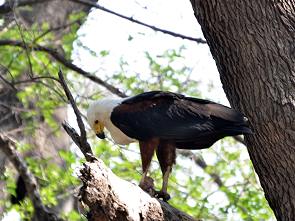 Wir haben hier leider nur eine Horde Paviane gesehen und auf den Sandbänken liegen zahlreiche Krokodile. Vögel gibt es viele, darunter verschiedene Storchenarten, Sandpiper, Kiebitze, Goliatreiher, Bienenfresser und Eisvögel. Auch ein paar Raubvögel kreisten am Himmel. An dieser Stelle darf man, auf eigene Gefahr natürlich, auch aussteigen und ein wenig herumlaufen.