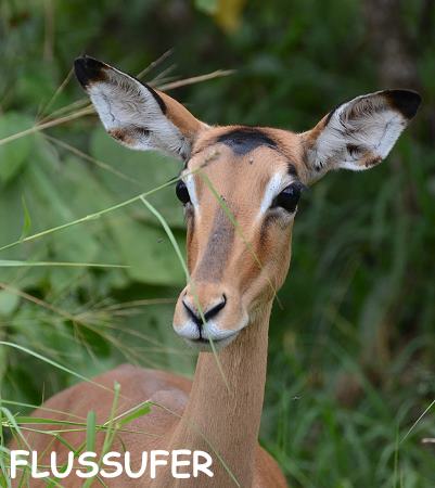 Auf den Inseln im Flussbett grasten Wasserböcke und sie waren durch unsere Anwesenheit am Ufer wenig beeindruckt. Die Nilgänse hatten viele Junge und liefen schnatternd in die Mitte des Flussbettes, als wir in einer Schleife ans Ufer fuhren.
