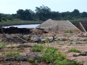 Daher staute sich jetzt auch nicht genug Wasser auf der Länge des ehemaligen Staubeckens. So gab es an einigen Stellen, an denen wir 2011 noch zahlreiche Hippos im tieferen Wasser beobachtet hatten, nur noch ein versandetes Flussbett. Die Hippos hatten sich an andere Stellen im Fluss zurück gezogen.