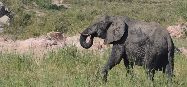 Wildhunde werden auch regelmäßig entlang der H4-2 gesehen, vor allem in den frühen Morgen. Wenn man sich dem Lower Sabie Camp nähert dann öffnet sich die Landschaft. Hier befindet sich ein anderer Untergrund, aus Schiefer wird Basalt. Die Lebombo-Berge werden im Osten sichtbar, die höchste Erhebnung ist der Muntshe, 435m über dem Meeresspiegel.
