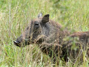 Sichtungen von Elefanten, Giraffen, Warzenschweinen und Büffeln hat man häufig, in den weiten Grasebenen, hier leben aber auch Geparde und Löwen.