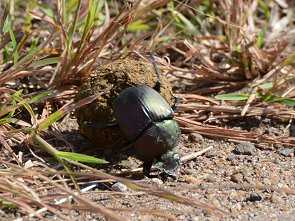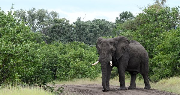 Kurz hinter einem runden Hügel mit Namen Maswidzudzu zweigt auf der gegenüber liegenden rechten Straßenseite eine Schleife ab, die sich lohnt. Die S69 bietet schöne Felsformationen, dichten Busch und natürlich tierische Begegnungen. Schon nach wenigen Metern überquert man das hübsche felsige Bachbett des Nhlanganini River. Bunte Steine säumen den Weg, kurz dahinter hatten wir die erste Begegnung zwei Elefanten, die zielstrebig auf dem Weg zum Wasser waren und im flotten Trab die Straße kreuzten. Aber auch kleinere Tiere wie Pillendreher und Schmetterlinge lohnen durchaus einen Stopp.