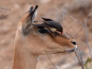 Wir haben uns einige Zeit unterhalb mitten in der Furt aufgehalten. Denn ein paar mächtige Büffel kamen zum Trinken ans Wasser, begleitet von einigen Madenhackern. Ich konnte gar nicht mehr aufhören zu fotografieren und sie ließen sich auch nicht stören. Als wir gerade fahren wollten, kam noch eine Herde Impalas on der anderen Seite ans Wasser.