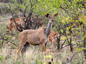 Sonst sahen wir nur ein paar prächtige Kudu-Bullen. Nordwestlich der Kreuzung von S93 und S44 steht der Von Wielligh's Baobab Tree. Von Wielligh hat die östlichen Grenzen des Parks vermessen und seine Initialen in die Rinde dieses Baumes geschnitzt. Graffiti Anno Dunnemals eben. Heute würde man dafür zu Recht streng bestraft. Am späten Nachmittag kamen wir dann an unserem Tagesziel Olifants Main Camp an.