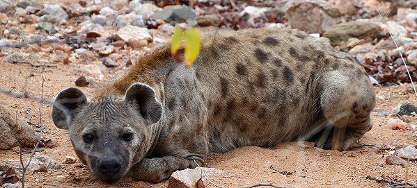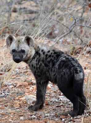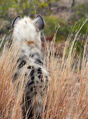 Die H14 ist asphaltiert und man kommt auf ihr gut voran. Den ersten Teil bis Shimuwini sind wir mehrmals gefahren und haben hier Büffel und vor allem Giraffen gesehen. Einmal hatten einmal am frühen Morgen sehr viel Glück. Eine Familie Tüpfelhyänen hatte sich direkt am Straßenrand gezeigt und nach geduldigem Warten und Suchen konnten wir sie dann eine ganze Weile alleine beobachten. Es waren auch Jungtiere dabei, die immer noch ein wenig tapsig wirkten. Während Mama sich ausruhte sprangen sie munter herum.