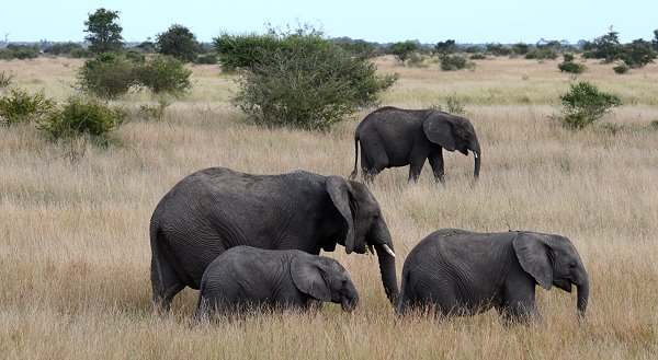 Dafür Mungos, einen Toko, der auf der Strasse im Sand badete, Affen, Büffel, Giraffen, Hornraben mit Jungtieren und am Ende sogar noch eine Gruppe Elefanten. Entlang den Mäandern des malerischen Timbavati-Flusses fährt man durch dichten Busch und ab und zu an einen Flecken mit offener Savanne vorbei. Nach 32 Kilometern endet die Timbavati River Road dann auf der H7.