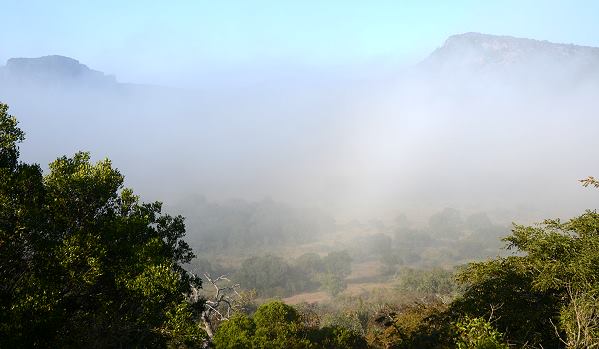 Das 2.600 Hektar große Leshiba Wilderness Reserve erstreckt sich entlang der Soutpansberge in Südafrikas Provinz Limpopo. Durch die Höhenlage ist die Venda Village Lodge am frühen Morgen oft in einen Nebelschleier gehüllt - eine zauberhafte Ansicht und auch der Grund für die üppige Pflanzenwelt. Wir hatten an einem Morgen unserer Abfahrt diese Nebelsicht von der Veranda unserer Suite, auf dem letzten Bild unten zu sehen. Doch die Schleier lüfteten sich recht schnell und die Aussicht auf das Wasserloch war wieder da. Eine ganz eigene Stimmung im südlichen Afrika.
