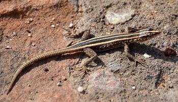 Hinter dem Kiosk beginnt ein kurzer Weg, der zum Pinnacles Lookout führt. Hier kann man von einer Holzplattform aus bizarre, spitze Sandsteinformationen im Tal sehen. Ein nettes Plätzchen mit vielen Echsen am Wegrand, an dem wir am Nachmittag ganz alleine unterwegs waren. Kein Wunder, denn es war an diesem Tag im Oktober unglaublich heiß, später erfuhren wir an der Rezeption von Temperaturen um die 36°C. Im Mai 2013 waren wir kurz vor Sonnenuntergang hier und es war wesentlich angenehmer.