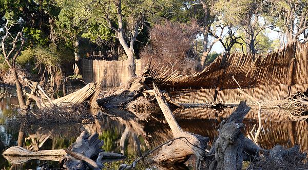 Im Mai 2013 haben wir dann ganz anders geplant, den Westteil mit einem schönen Birdhide namens Maloutswa wollten wir unbedingt mal sehen. So buchten wir noch einmal zwei Nächte im Leokwe Camp und eine weitere Nacht im Limpopo Forest Tented Camp, um früh am Morgen und am Abend zum Birdhide zu kommen. Leider haben uns die schweren Fluten von Anfang 2013 einen Strick durch die Rechnung gemacht, denn der Bird Hide war fast komplett zerstört (siehe Bild unten), ebenso der Tree Top Walk im Ostteil. Trotzdem hat sich der Abstecher in diesen Parkteil gelohnt, denn auch hier haben wir viele Tiere gesehen und die Landschaft ist anders als im Osten. Leider gibt es in Richtung Limpopo hier auch noch Zäune mit Stacheldraht und alte Grenzbefestigungen.