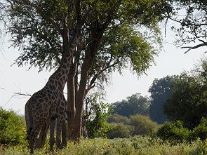 Gegenüber vom offiziellen Eingang zum Westteil auf der anderen Seite der Zufahrtsstrasse gibt es noch einen Loop durch eine trockene Steppenlandschaft, den wir am Abfahrtstag gefahren sind. Da wir am Morgen Zeit hatten, weil wir an diesem Tag nur nach Leshiba fahren mussten, konnten wir noch ein Stück vom 19 Kilometer langen Mopanie 4x4 Drive fahren. Hier ist es wesentlich trockener als am Flussufer und nach einigen Kilometern, die ziemlich wenig Tiere brachten, nahmen wir die Abkürzung zurück auf die Dan Straat Gravel Road. Die ganze Schleife ist sicherlich interessanter, aber schwierig zu befahren und nicht sehr gepfelgt, wie man uns am Eingang mitteilte. Das Risiko am Abfahrtstag mitten in der Wildnis liegen zu bleiben war uns dann doch zu gross.