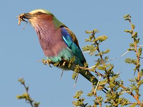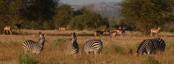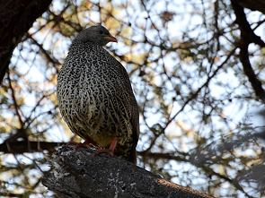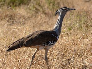Es gibt einige Rundwege im Park, die aber nicht ausgeschildert sind. Teilweise führen sie in etwas verwirrenden Schleifen durch dichten Wald oder durch offene Graslandschaft. Neben der Piste in Richtung Bird Hide sieht man oft Riesentrappen, die in Gras entlangstolzieren. Man kommt auch durch die mit Zäunen und Grids geschützte Schonung, auf der verschiedene Pflanzen neu angepflanzt und gezüchtet werden. Tiere, die sie abfressen wollen, haben wir im Inneren aber ebenfalls gesehen, solche Viehgatter im Boden scheinen für hungrige Antilopen und Elefanten keine richtigen Hindernisse zu sein.