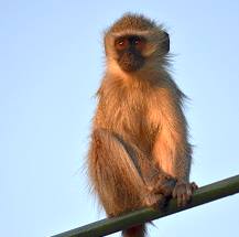 Lästiger sind da schon die Affen und genau die sind hier auch ein Problem. Denn die hier lebenden Tiere in allen Altersklassen haben das Futterpotential der offenen Küchen schnell erkannt. Eine große Familie Grüne Meerkatzen hat es sich in den umliegenden Bäumen gemütlich gemacht, die Tiere lauern auf jeden Neuankömmling.