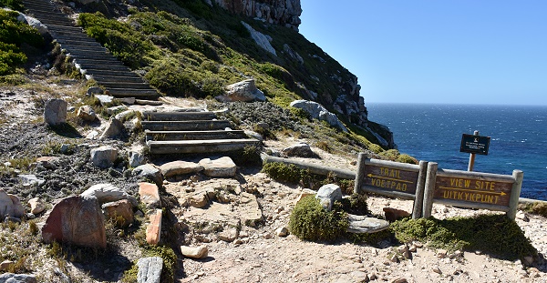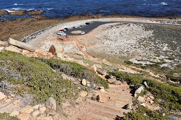 Einige Besucher, die am Leuchtturm und am davorliegenden Cape Point waren, denken, sie hätten damit auch das Kap der Guten Hoffnung besucht. Leider ein Irrtum, denn das Cape of Good Hope ist die kleine Felsennase rechts unterhalb der Aussichtsterrassen am Cape Point. Dazwischen liegt noch der hübsche Diaz-Sandstrand. Das liegt daran, daß die Landzunge mit den Leuchttürmen sich in Richtung Ost-Südost erstreckt und daher nicht den südlichsten Punkt des Kaps bildet.