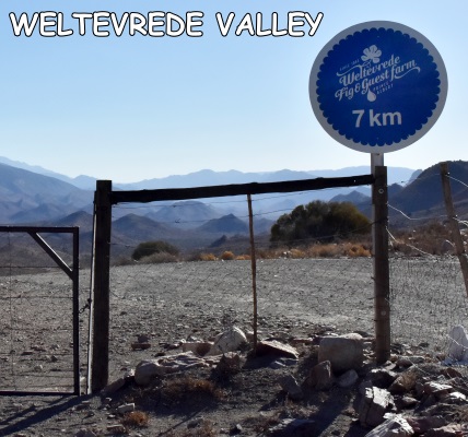 Ziel für einen Ausflug ist ein Einkauf auf der Feigenfarm von Weltevrede, die man nach ca. 25 Kilometern Fahrt erreicht und die schon am Anfang der Straße ausgeschildert ist. Weltevrede bedeutet soviel wie "wohl-zufrieden", der Name findet sich auch noch einmal bei Sesriem in Namibia.