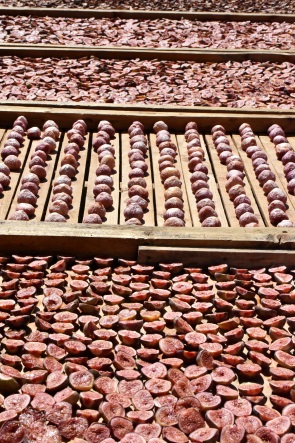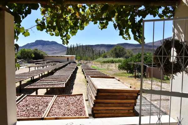 Hier kann man dann zur Saison frische Feigen kaufen und den Frauen aus Prince Albert beim Verarbeiten zusehen. Die Feigen werden auf Gestellen in der Sonne getrocknet, das Endprodukt ist dann ebenfalls im Shop zu haben. Dazu gibt es das ganze Jahr über extrem leckere, helle Feigenmarmelade in großen Gläsern, natürlich hier vor Ort preiswerter als in den Shops im nahen Prince Albert. Man kann wählen zwischen reiner Feigenmarmelade, Feigen mit Erdbeeren, Feigen mit Zwiebeln, eingelegten ganzen Feigen oder getrockneten Feigen. Ein Arbeiter der Farm stellt Schneidebretter für die Küche aus Holz mit eingebranntem Logo her, die hier ebenfalls verkauft werden. Die Gläser haben geschmackvolle Papierdeckel und ein aufgedrucktes Logo. Sie sind mit leckerem Inhalt also auch ein schönes, wenn auch schweres Souvenir.