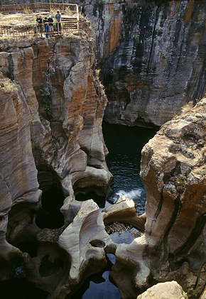 Der Weg zu den Potholes führt über hölzerne Wege und über Brücken die den über den hier schmalen und tief eingeschnittenen Canyon überspannen. 30 Meter geht es in die Tiefe am Zusammenfluss des von Treur River und Blyde River.