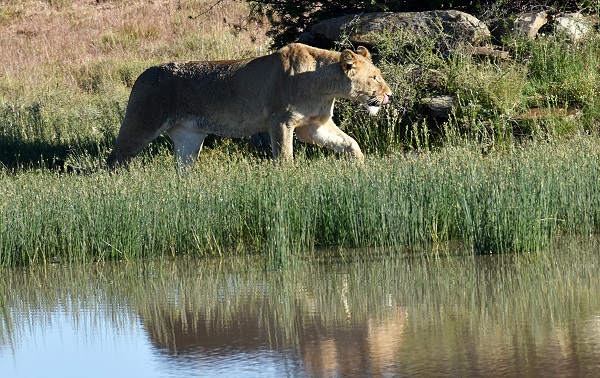Wir hatten soagr das grosse Glück, hier ganz alleine eine halbe Stunde lang vier Löwen zu beobachten, mehr dazu auf der Seite Vier Löwen. Ein Besuch in dieser Region lohnt sich auf jeden Fall, es sind nicht viele Autos unterwegs und die Tiere am Wegrand sind nicht sehr scheu und lassen sich so gut fotografieren.