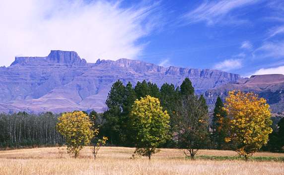 Wenn man vorher in Giants Castle war, dann wirkt hier alles ziemlich steril und touristisch. Die Ausblicke auf die Berge sind schon vom Tal aus allerdings fantastisch. Kein Wunder also, das hier riesige Hotelanlagen gebaut wurden. Bis Mitte der 70er Jahre war die Region nur Ziel von Extremwanderern und Bergfreunden. Nach und nach kamen dann auch Reisende aus den Städten, die hier Ruhe und Erhohlung oder schlicht "Fun" in den Bergen suchten. Es werden auch Helikopterrundflüge angeboten. Telefon: 082-572 3949.