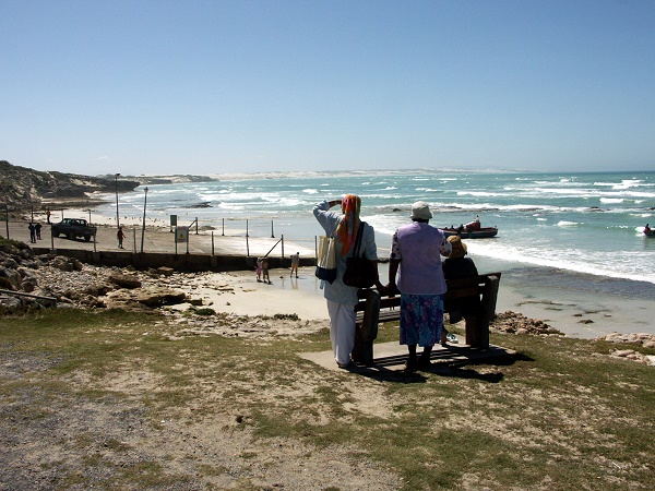 Beherrschend im Ortsbild ist der winzige Hafen mit Bootsrampe und das Arniston Hotel, auf dessen Terrasse wir einen Stopp zum Mittagessen machten. Es wurde zu den "One of the worlds Top 10 Hideways" gewählt. Hier sitzt man wunderbar mit Blick auf das Meer.