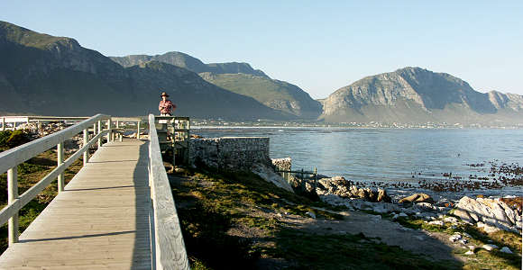Dahinter folgt Kleinmond. In diesem hübschen Ort kann man in der Nähe des Hafens in einem der Restaurants und Geschäfte oder am schönen Strand eine kleine Rast einlegen. Es gibt eine Lagune und den bekannten Strand von Kleinmond. Danach fährt man um den Botrivier Vlei herum und erreicht den bekanntesten Ort der Küste: Hermanus mit seinen vielen Vororten wie Vermont, Onrus oder Sandbaii. Hier hat sich in den letzten Jahren viel getan, das gefällt uns nicht mehr. Man hört überall nur Deutsch und alles ist ziemlich zugebaut, auch der Verkehr hat sehr stark zugenommen.