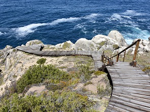 Route A: Vom Parkplatz auf der Mitte des ersten Felsplateaus geht man auf der einen Seite hinunter bis "The Gap", einem markanten Einschnitt in der Halbinsel. Auf der anderen Seite dann mit etwas Kletterei über steile Felsen wieder hinauf. Etwas mehr als 2 km und eine halbe Stunde Weg. Wer nicht so gut klettern kann, der hält sich auf der Nordseite mit Blick auf Plett und geht den gleichen Weg zurück.