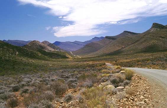 Etwa 3 km hinter Matjesrivier, von Ceres aus kommend, und 4 km vor der Abzweigung nach Kromrivier haben wir 2002 leider die Abfahrt zu den bekannten Stadsaal Caves verpasst. Wie so oft in Südafrika war dort ein Tor und Schilder mit Aufschriften wie: "Permit only!". Ohne intensive Vorbereitung weiß man natürlich nicht, wie man an so ein Permit kommt. Also sind wir weitergefahren und haben die sicher eindrucksvollen Stadsaal Caves mit Felsenbildern der Buschmänner verpasst. Pech gehabt, 2002 stand auch in unserem damaligen Reisefüher nichts darüber und Navi gab es damals noch nicht...
