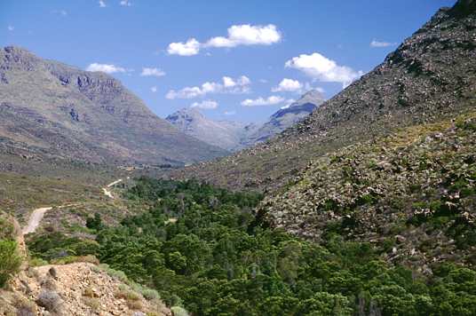 Eine lange, aber interessante Strecke führt durch diese Wildnis. Vorbei an mehreren Farmen fährt man auf einer nicht enden wollenden Gravel Road durch ein abgeschlossenes Tal, welches parallel zur R303 verläuft, die im Nachbartal über den Middelberg-Pass nach Citrusdal führt. Dazwischen sind allerdings hohe Berge, wer sich für diesen Weg entschieden hat findet unterwegs keine Abzweigung mehr. Man fährt von Ceres über den Gydopass, biegt dann später rechts ab in Richtung Tweefontein um dann nach wenigen Kilometern wieder nach links abzubiegen. Dann geht es eigentlich immer geradeaus in Richtung Cedarberg und Algeria.