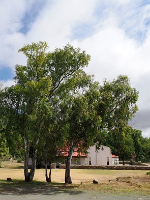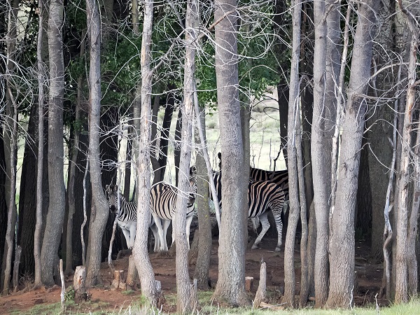 Auch auf dem Weg in Richtung Norden, nach Middelburg, kommt man an einigen alten Gebäuden vorbei, hier schauten uns Nguni-Rinder durch die Türen an. Überall zeugen angelegte Wälder und Bauminseln noch von den ehemaligen Farmern, hier stehen dann auch mal Zebras mitten zwischen angepflanzten Baumstämmen.