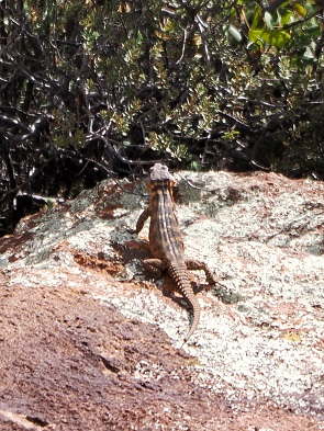 Einige Echsen haben wir auch gesehen, sogar recht große Exemplare, diese waren aber sehr scheu. 30 Meter oder mehr, näher kamen wir nicht heran. Da war bei flirrender Hitze kaum ein scharfes Bild zu schaffen.