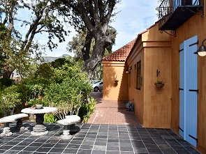 Das Cap Serein Guest House haben 2018 ausgewählt, weil man hier in einem eigenen Cottage im Garten wohnen kann. So hat man keine direkten Nachbarn. Auch der Ausblick von hier oben über Hout Bay ist sehr schön, wenn auch ein wenig zugewachsen. Das Haupthaus, in dem die Gastgeber wohnen, ist im Stil der Provence erbaut, in mit Wänden in Ocker und blauen Holzläden. Davor ein Wintergartenanbau, in dem man bei schlechtem Wetter sitzen kann zum Essen und Frühstücken. Auch die Zimmer haben französische Namen.