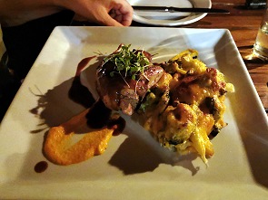 So hatten wir uns zum Beispiel am ersten Abend für Krokodilschwanz in Kokos-Curry Sauce entschieden, danach folgte eine üppige und wunderbare Lammhaxe und Vanilleeis mit karamelisierten Organgen. Es gab geräuchertes Wild mit Salatbeilage, gefüllte Wachtel, gegrilltes Impala, Springbockhaxe, frisch Gegrilltes, Malva Pudding oder Rotweinbirne. Wir haben jeden Tag das Essen hier genossen!
